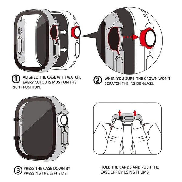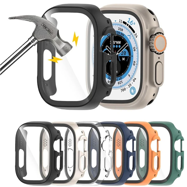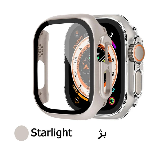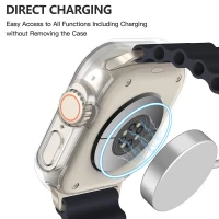 کاور full cover ، بدنهای از جنس پلیکربنات دارد. این متریال نسبت به TPU سختتر بوده و با اینکه نسبت به آن انعطافپذیری کمتری دارد ولی محافظ قویتر و مستحکمتری محسوب میشود. هرچند سخت بودن این کاور اختلالی در نصب آن ایجاد نمیکند و با کمی دقت میتوان به آسانی آن را روی ساعت نصب نمود. برشکاری دقیق کاور در قسمت دکمهها و پورتها سبب شده تا در دسترسی به آنها محدودیتی ایجاد نشود. علاوه بر این ضخامت کم این محصول اپل واچ شما را بیش از حد برجسته نمیکند و کاملا با ابعاد ساعت هماهنگ است.گلس حرارتدیده متصل به این کاور نیز با بهرهگیری از یک طراحی هوشمندانه به خوبی فشار لمس را به صفحه نمایش ساعت انتقال میدهد و تا حد ممکن اختلالی در عملکرد تاچ ایجاد نمیکند.