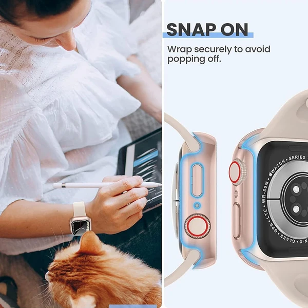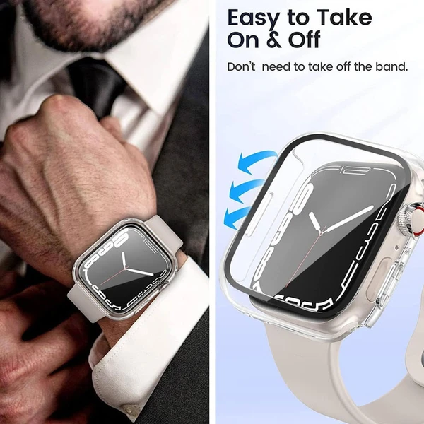 کاور مدل Full-Wm مناسب برای اپل واچ سری se/1/2/3/4/5/6/7/8/9/2021/2023/aluminum case سایز 45 میلی متری به همراه محافظ صفحه نمایش
