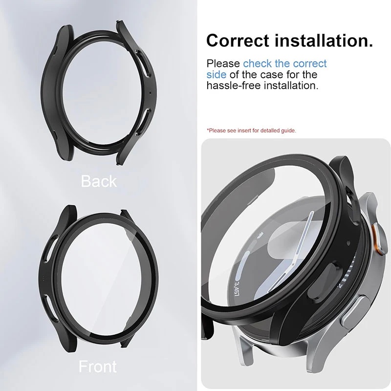 کاور همراه این ست از پلاستیک فشرده مقاوم تولید شده که از بدنه ساعت در برابر ضربه، خطوخش و سایش محافظت میکند. طراحی دقیق آن کاملاً مطابق با ابعاد Galaxy Watch 7 Classic 44mm بوده و بدون ایجاد مزاحمت روی ساعت فیکس میشود.