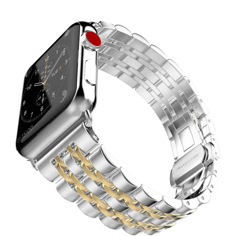 بند استیل / فلزی مناسب برای ساعت هوشمند مدل 7Bead SLV 2C بند استیل / فلزی ساعت هوشمند مناسب برای اپل واچ 41 mm سری 8