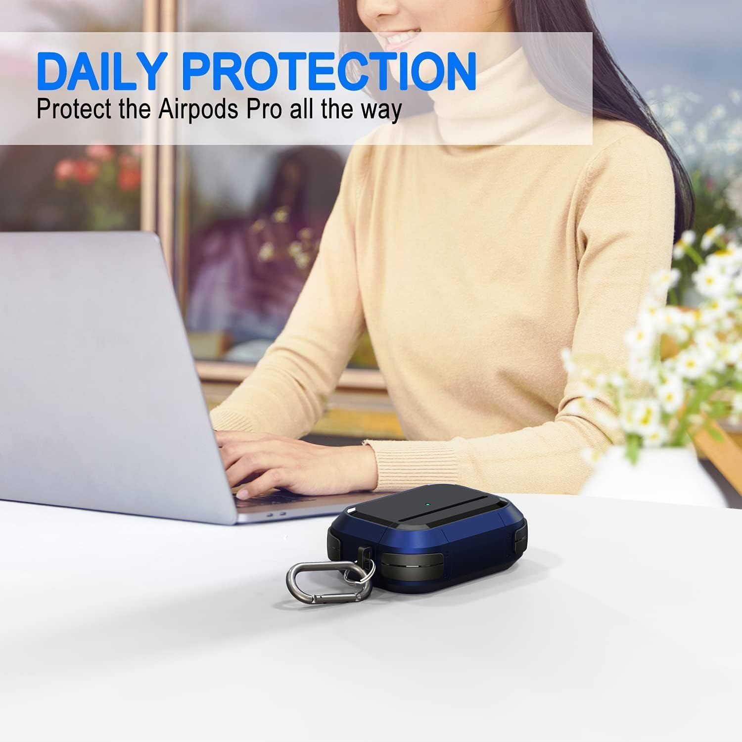 کاور هندزفری ایرپاد 2 Apple Airpods proمدل Eggshell مجهز به یک کارابین یا همان حلقه آویز است. بهراحتی میتوانید آن را روی بند کیف و یا بند شلوار آویزان کنید.