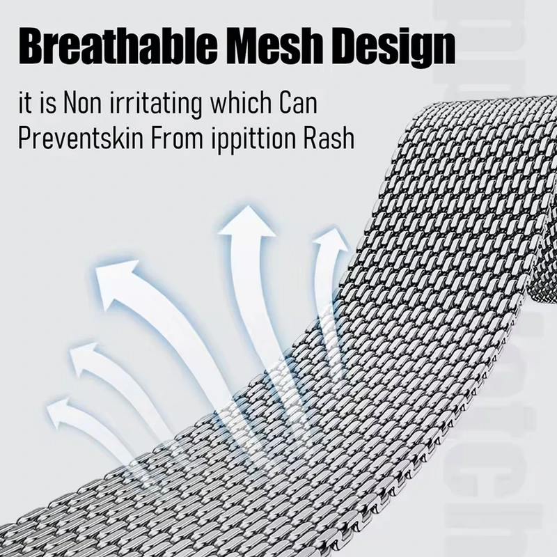 قفل مگنتی قوی و ایمن باعث میشود بند در تمام لح همچنین استفاده روی مچ شما ثابت بماند، بدون نیاز به تنظیمهای مکرر. همچنین استفاده از پینهای رهاسازی سریع (Quick Release Pins) تعویض بند را در کمتر از چند ثانیه ممکن میسازد.
