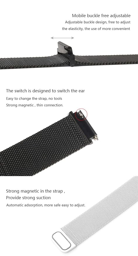 قفل مگنتی قوی و ایمن باعث میشود بند در تمام لح همچنین استفاده روی مچ شما ثابت بماند، بدون نیاز به تنظیمهای مکرر. همچنین استفاده از پینهای رهاسازی سریع (Quick Release Pins) تعویض بند را در کمتر از چند ثانیه ممکن میسازد.