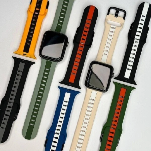 بند سیلیکون پاک کنی خط دار اصل مدل Sic مناسب برای اپل واچ apphe wache سایزبندی و رنگ بندی کامل