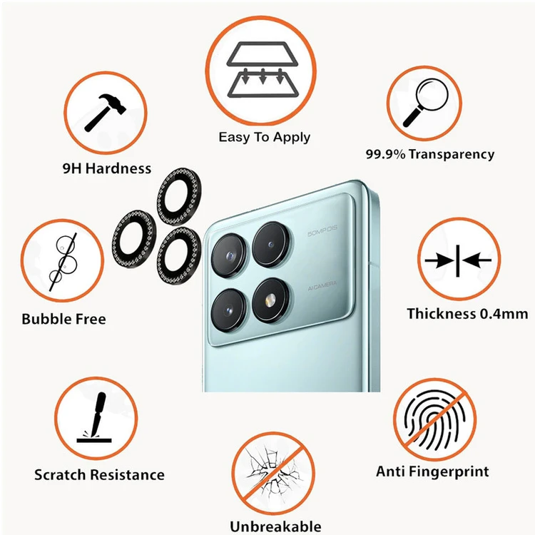 محافظ لنز دوربین با در نظر گرفتن دو جنبه ی زیبایی و حفاظت، یک محافظ تمام عیار برای لنز دوربین میباشد. این محافظ برای دوربین اصلی طراحی شده است تا آن را از خط و خش، شکستگی و آسیب های احتمالی دیگر حفظ کند و مانع از نشستن هر گونه لک و چربی روی لنز و در نتیجه افت کیفیت دوربین شما می شود. با وجود نصب آسانی که دارد میتوانید به راحتی آن را روی دوربین گوشی خود نصب کنید و نگران ماندن رد این محافظ لنز روی دوربین به هنگام جدا کردن آن نباشید چراکه هیچ ردی روی شیشه دوربین برجای نمی گذارد و پس از جدا کردن آن، دوربین مثل روز اولش خواهد بود. در نهایت اینکه این محافظ لنز تاثیری روی لنز دوربین و کیفیت تصاویر یا فیلم های ثبت شده ندارد و می توانید با خیال راحت از آن استفاده کنید.