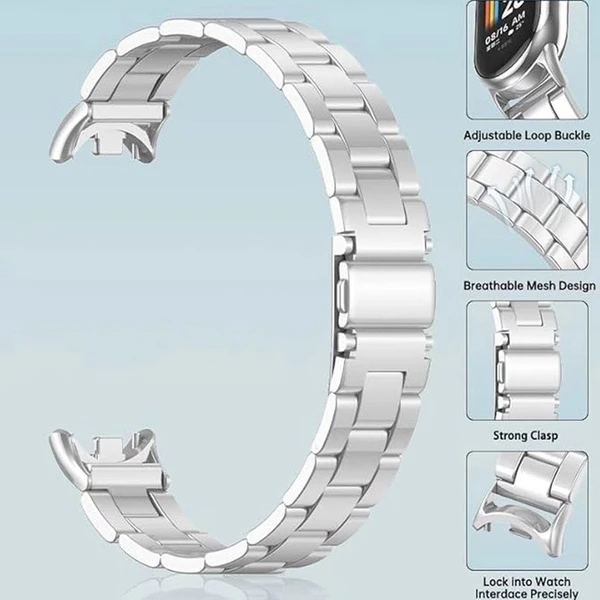 خرید بند فلزی 3BEAD مناسب ساعت هوشمند شیائومی می بند Mi BAND 8 استیل با کیفیت و قفل کلیپسی